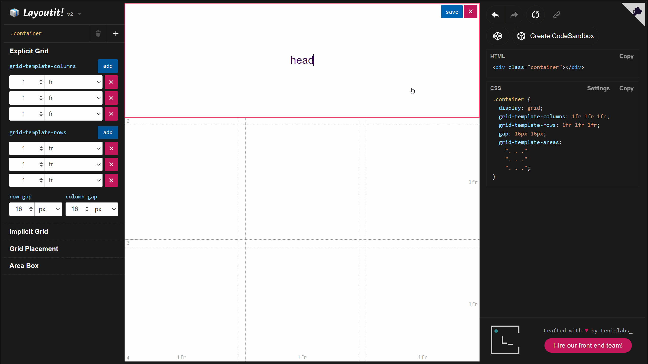 We hope you enjoy the new Layoutit! Star our repo, and collaborate with us to keep improving the application. And if you’re facing interesting problems in your company, we are always looking for new challenges for our frontend team at Leniolabs_.